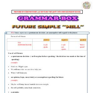 Will future expresses a spontaneous decision, an assumption with regard to the future.