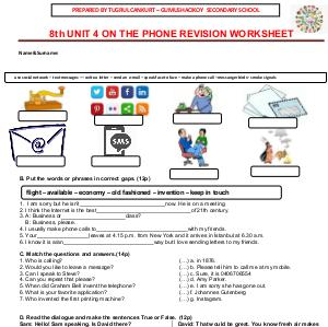 8th UNIT 4 ON THE PHONE REVISION WORKSHEET