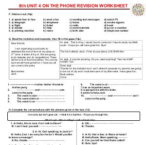 8th UNIT 4 ON THE PHONE REVISION WORKSHEET