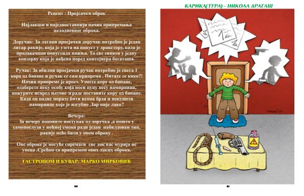 Ручак : За обилни просјачки ручак потребно је свега 1 кора од банане и ручак се сам припрема . Питате се како ?! Начин припреме је прост . Узмете кору од банане , одаберете неку особу која носи пуну кесу намирница , пожурите испред његове зграде поставите кору од банане . Када он падне морате бити веома брзи и покупити намирнице које је изгубио . Зар није лако ?