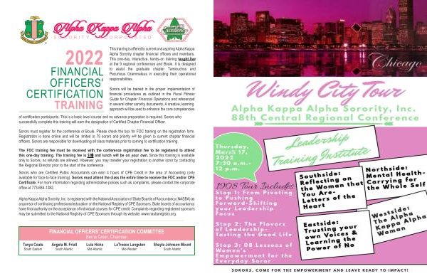 This training is offered to current and aspiring Alpha Kappa Alpha Sorority chapter financial officers and members . This one-day , interactive , hands-on training taught live at the 9 regional conferences and Boule . It is designed to assist the graduate chapter Tamiouchos and Pecunious Grammateus in executing their operational responsibilities .