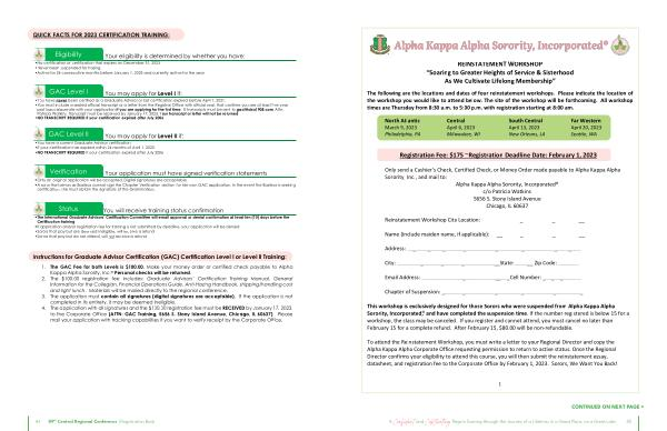 To attend the Reinstatement Workshop , you must write a letter to your Regional Director and copy the Alpha Kappa Alpha Corporate Office requesting permission to return to active status . Once the Regional Director confirms your eligibility to attend this course , you will then submit the reinstatement essay , datasheet , and registration fee to the Corporate Office by February 1 , 2023 . Sorors , We Want You Back !