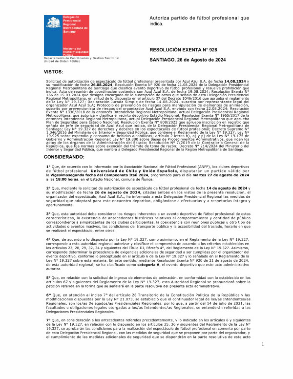 ������������������������������������������������������������������������������������������������������14.08.2024 y �������������������������26.08.2024; �������������������������������������������������������������������������� ������������������������������������������������������������������������������������������������������������������ indica�������������������������������������������������������������������������������������������������������� ������������������������������������������������������������������������������������������������������������� ������������������������������������������������������������������������������������������������������������������� �������������������������������������������������������������������������������������������������������� ���������������������������������������������������������������������������������������������������������� �������������������������������������������������������������������������������������������������������������� �������������������������������������������������������������������������������������������������������������� Metropolitana, que autoriza y clasifica el recinto deportivo Estadio Nacional; ��������������������������������de la �������������������������������������������������������������������������������������������������� que aprueba Plan de Seguridad para Estadio Nacional; ��������������������������������������������������������������������� ������������������������������������������������������������������������������������������������������������ Santiago��������������������������������������������������������������������������������������������������� ������������������������������������������������������������������������������������������������������������������ ������������������������������������������������������������������������������������������������������������ �������������������������������������������������������������������������������������������������������������� ���������������������������������������������������������������������������������������������������������� ������������������