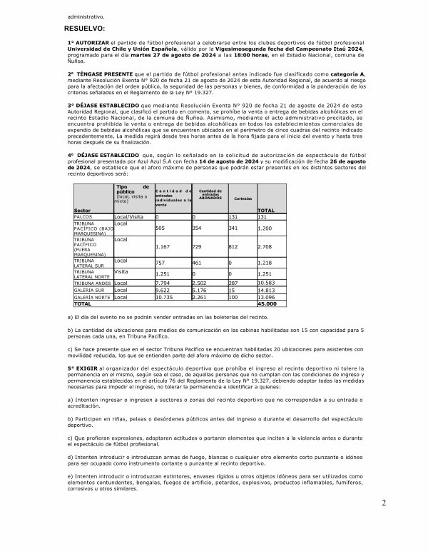 ������������������������������������������������������������������������������������������������������������ �������������������������������������, �������������������������������������������������������������, �����������������������martes 27 de agosto de 2024 a las 18:00 horas, en el Estadio Nacional, comuna de ������