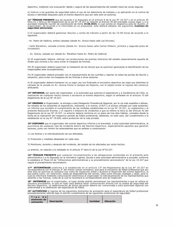������������ que el organizador del evento deportivo informe a la brevedad, a esta autoridad administrativa, la ocurrencia de cualquier tipo de incidente dentro del Recinto Deportivo, especialmente aquellos que generen ���������������������������������������������������������������������������