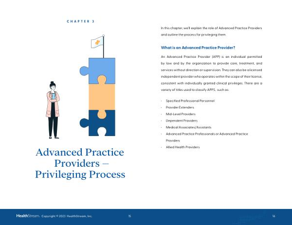 In this chapter , we ’ ll explain the role of Advanced Practice Providers and outline the process for privileging them .