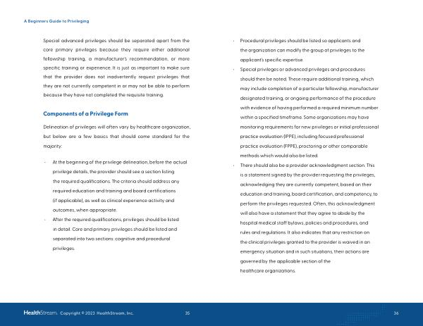 • Procedural privileges should be listed so applicants and the organization can modify the group of privileges to the applicant ’ s specific expertise .