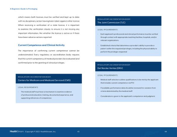 The importance of confirming current competence cannot be underestimated . Every regulatory or accreditation body requires that the current competency of medical providers be evaluated and confirmed prior to the granting of clinical privileges .