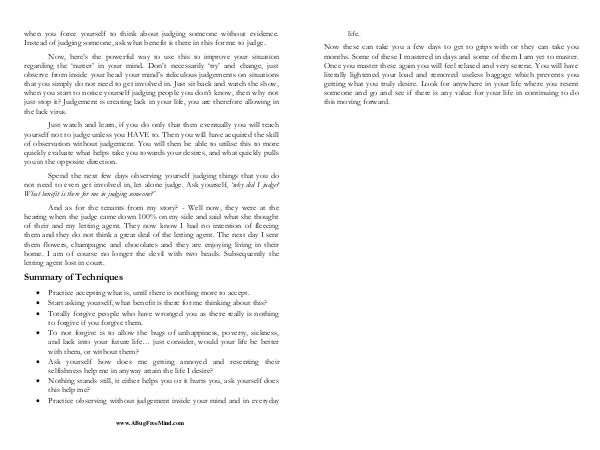 Now these can take you a few days to get to grips with or they can take you months. Some of these I mastered in days and some of them I am yet to master. Once you master these again you will feel relaxed and very serene. You will have literally lightened your load and removed useless baggage which prevents you getting what you truly desire. Look for anywhere in your life where you resent someone and go and see if there is any value for your life in continuing to do this moving forward.