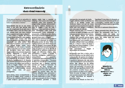 Extraordinário faz jus ao seu nome, afinal, é um livro que aborda uma questão complicada de um jeito leve e encantador. Este é um dos livros que com certeza lerei com meus futuros alunos, quando me tornar professora!