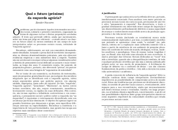 O pressuposto que anima esta curta reflexão deve ser, portanto, imediatamente enunciado. Para analisar com maior precisão os processos sociais rurais em curso no país, precisamos de um vivo e ativo“ pensamento à esquerda”. Em decorrência, o lento e gradual estiolamento ora observado nesse campo de inquirição é um desenvolvimento profundamente deletério à nossa capacidade de avançar o conhecimento mais sólido acerca da produção agropecuária e da vida social rural.