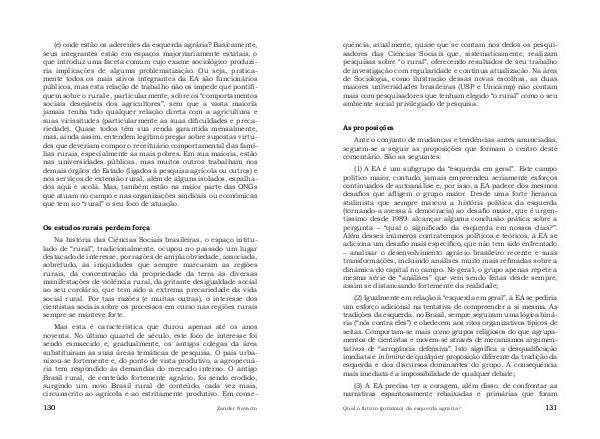 Mas esta é característica que durou apenas até os anos noventa. No último quartel de século, este foco de interesse foi sendo esmaecido e, gradualmente, os antigos colegas da área substituíram as suas áreas temáticas de pesquisa. O país urbanizou-se fortemente e, do ponto de vista produtivo, a agropecuária tem respondido às demandas do mercado interno. O antigo Brasil rural, de conteúdo fortemente agrário, foi sendo erodido, surgindo um novo Brasil rural de conteúdo, cada vez mais, circunscrito ao agrícola e ao estritamente produtivo. Em conse-