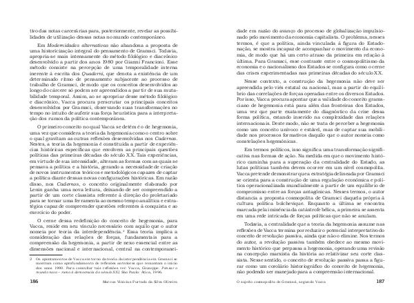 Todavia, a centralidade que a teoria da hegemonia assume nas reflexões de Vacca termina por reduzir o potencial interpretativo do conceito de revolução passiva, ainda que não o elimine. Nos termos do autor, a revolução passiva também obedece ao mesmo movimento histórico que perpassa a hegemonia, operando uma revisão na concepção marxista da história ao relativizar seu corte classista. Nesse sentido, o conceito de revolução passiva passa a figurar como um corolário historiográfico do conceito de hegemonia, não podendo ser manejado para a compreensão internacional.