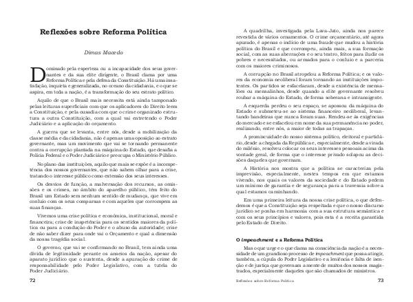 A corrupção no Brasil atropelou a Reforma Política; e os valores da economia neoliberal foram tornando as instituições impotentes. Os partidos se esfacelaram, desde a existência de mensalões ou mensalinhos, desde quando a elite governante resolveu roubar a máquina do Estado, de forma soberana e intransigente.