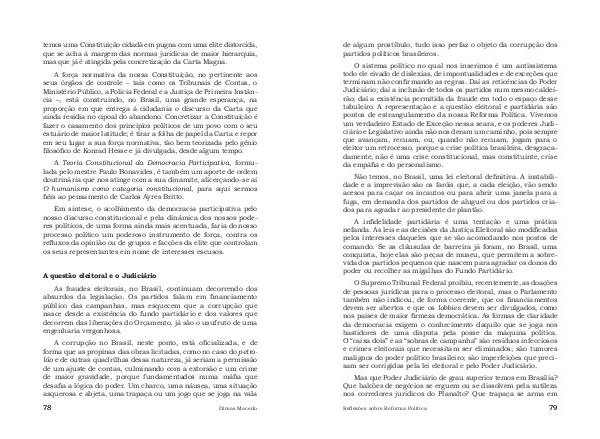 O sistema político no qual nos inserimos é um antissistema todo ele eivado de dislexias, de impontualidades e de exceções que terminam não confirmando as regras. Daí as reticências do Poder Judiciário; daí a inclusão de todos os partidos num mesmo caldeirão; daí a existência permitida da fraude em todo o espaço desse tabuleiro. A representação e a questão eleitoral e partidária são pontos de estrangulamento da nossa Reforma Política. Vivemos um verdadeiro Estado de Exceção nessa seara, e os poderes Judiciário e Legislativo ainda não nos deram um caminho, pois sempre que avançam, recuam, ou, quando não recuam, jogam para o eleitor um retrocesso, porque a crise política brasileira, desgraçadamente, não é uma crise constitucional, mas constituinte, crise da empáfia e do personalismo.