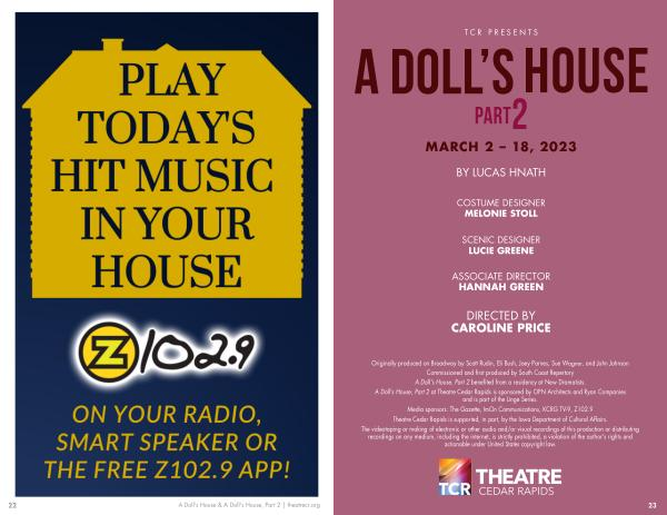 A Doll ' s House , Part 2 at Theatre Cedar Rapids is sponsored by OPN Architects and Ryan Companies and is part of the Linge Series .