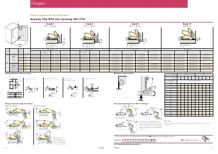 Hinge 165 ° opening Hinge 170 ° opening