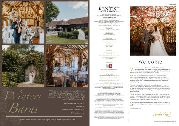 Welcome to your Autumn issue of A Kentish Ceremony. Kent is known as The Garden of England, and perhaps when we hear that moniker we picture spring fields and summer blooms. But, this county is also awash with beauty in autumn.