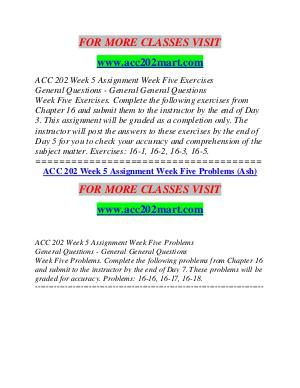 ACC 202 Week 5 Assignment Week Five Problems (Ash)