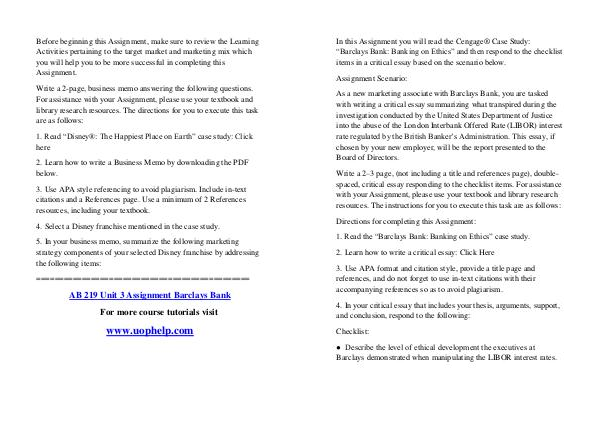 Directions for completing this Assignment: 1. Read the“ Barclays Bank: Banking on Ethics” case study. 2. Learn how to write a critical essay: Click Here