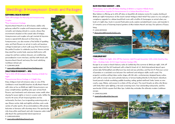 Keyonna Beach Resort is an all-inclusive, adults-only getaway suited for couples and honeymooners seeking a romantic and relaxing retreat in a scenic, stress-free environment situated on the sunset side of Antigua. Honeymooners and couples who get married at Keyonna receive a special 10% discount on their stay. As honeymooners, you also receive a free bottle of sparkling wine, and fresh flowers on arrival. A rustic yet luxurious cottage located just a short walk away from the beach is the perfect location to celebrate your love. Rooms include king-sized four-poster beds, spacious bathrooms with unique his and hers outdoor showers, air conditioning, personalized in-room mini bars, and free WIFI. Book with Keyonna Beach Resort and enjoy the most satisfying Caribbean retreat yet.
