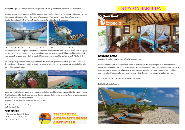 Barbuda Tip- Take a Day Trip from Antigua to Barbuda by catamaran cruise on the Excellence.