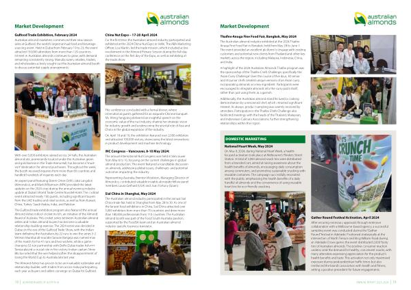 The Australian almond industry exhibited at the 2024 Thaifex- Anuga Fine Food Fair in Bangkok , held from May 28 to June 1 . The event provided an excellent platform to engage with existing customers and potential new clients from Thailand and other key markets across the region , including Malaysia , Indonesia , China , and India .