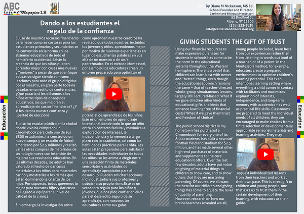 El uso de nuestros recursos financieros para hacer compras costosas para los estudiantes primarios y secundarios se ha convertido en la norma en los sistemas educativos de todo el hemisferio occidental. Existe la creencia de que los niños pueden aprender mejor con cosas más nuevas y "mejores" a pesar de que el enfoque educativo sigue siendo el mismo: lecciones para todo el grupo dirigidas por el maestro, en gran parte todavía basadas en un estilo de conferencias. ¿Qué pasaría si les diésemos a los niños otros tipos de obsequios educativos, los que mejoran el aprendizaje sin costos financieros? ¿Y si les damos nuestra confianza y libertad de elección?