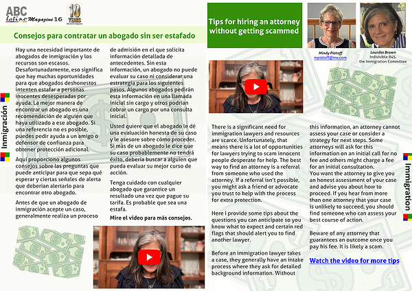 Hay una necesidad importante de abogados de inmigración y los recursos son escasos. Desafortunadamente, eso significa que hay muchas oportunidades para que abogados deshonestos intenten estafar a personas inocentes desesperadas por ayuda. La mejor manera de encontrar un abogado es una recomendación de alguien que haya utilizado a ese abogado. Si una referencia no es posible, puedes pedir ayuda a un amigo o defensor de confianza para obtener protección adicional.