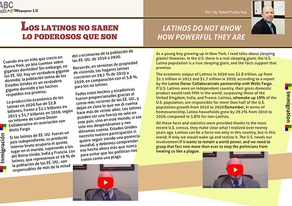 All these facts and statistics were provided thanks to the most recent U.S. census, they make clear what I realized over twenty years ago. Latinos can be a force not only in this country, but in this world; if only we would wake up and realize it. The U.S. needs our involvement if it wants to remain a world power, and we need to grasp that fact now more than ever to stop the politicians from treating us like a plague.