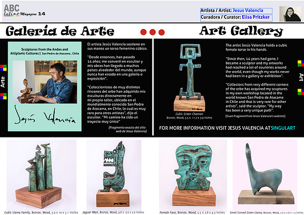 mi propio taller, ubicado en el mundialmente conocido San Pedro de Atacama, en Chile, lo cual es muy raro para otros artistas”, dijo el escultor. “Mi camino ha sido un trayecto muy único”