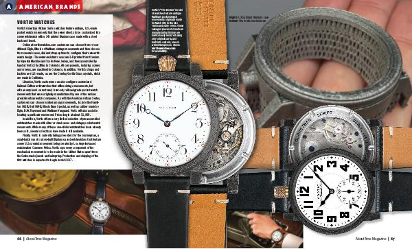 Right: A 3D printed titanium case Below: The Vortic Journeyman AboutTime Magazine | 67