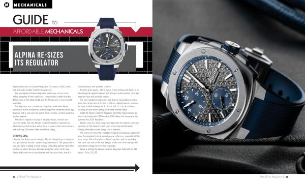 Inside the Alpiner Extreme Regulator Automatic Alpina retains its time-tested automatic ETA-based AL-650 caliber , the movement that powered the 2005 Regulator .