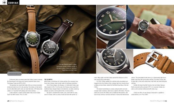THE OLYMPOS While Zodiac is best-known for its dive watches , the company ’ s long history also includes many models made for land-based adventure .