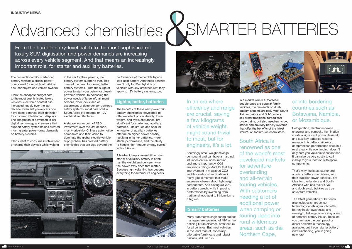 In a market where turbodiesel double-cabs are popular family vehicles, the demands on dualbattery systems are real. Most South African bakkie and SUV owners still prefer traditional turbodiesel powertrains, but also need enhanced starter and auxiliary battery systems that offer the benefits of the latest lithium- or sodium-ion chemistries.