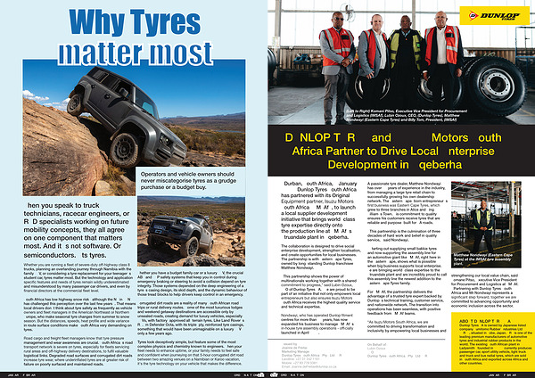 [ Durban, South Africa, 8 January 2026 ] Dunlop Tyres South Africa has partnered with its Original Equipment partner, Isuzu Motors South Africa( IMSAf), to launch a local supplier development initiative that brings world-class tyre expertise directly onto the production line at IMSAf’ s Struandale plant in Gqeberha.