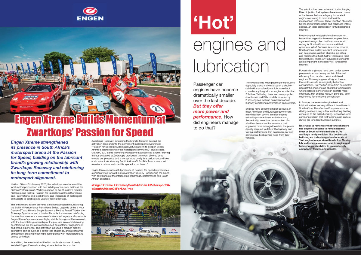 Engen Xtreme strengthened its presence in South Africa’ s motorsport arena at the Passion for Speed, building on the lubricant brand’ s growing relationship with Zwartkops Raceway and reinforcing its long-term commitment to motorsport alignment.