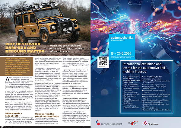 A heavy vehicle on a corrugated Karoo road is a reality for South African drivers and 4x4 owners. And that ' s why experienced South African all-terrain drivers and overlanders know how important reservoir dampers with adjustable rebound control are.