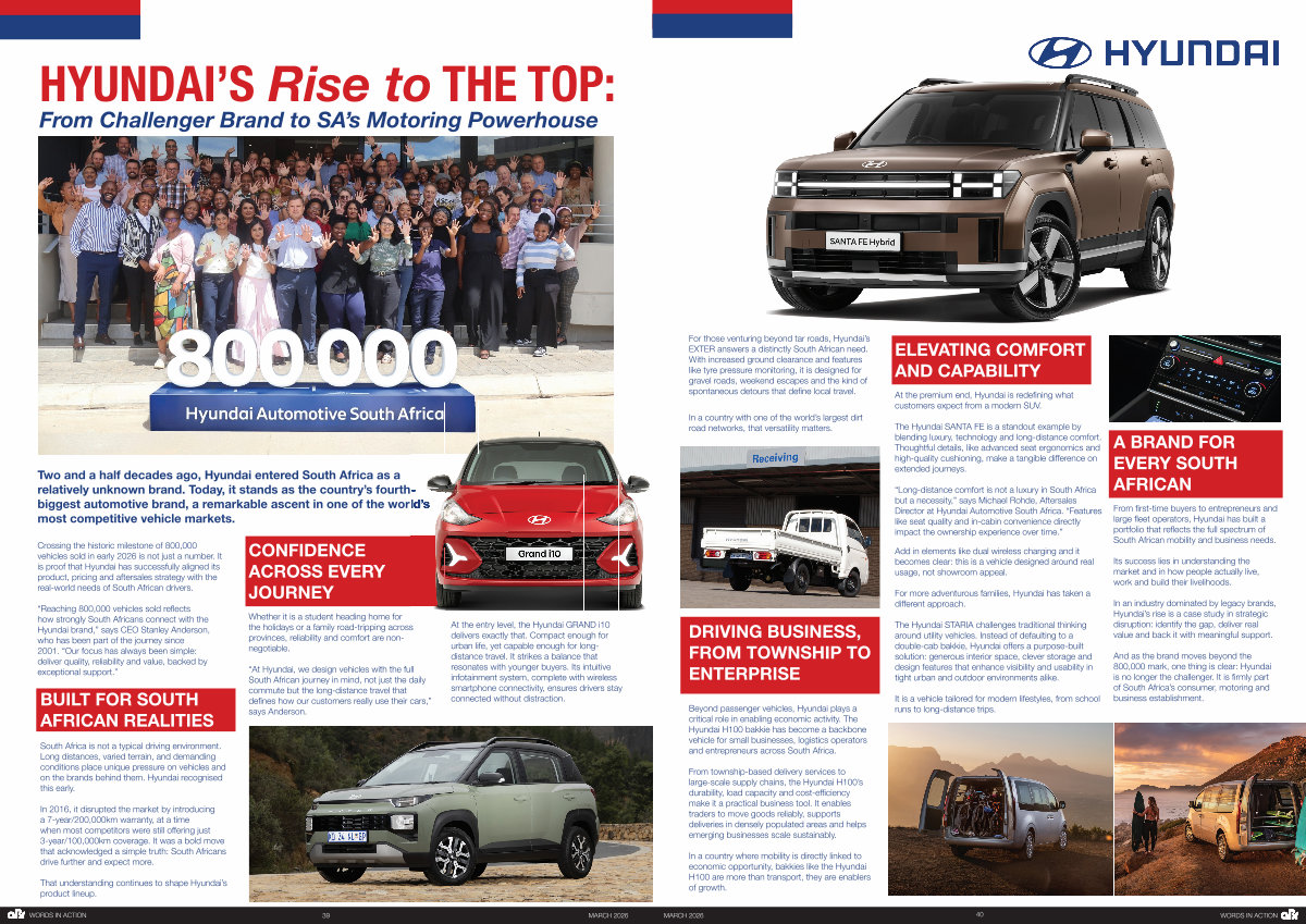 Crossing the historic milestone of 800,000 vehicles sold in early 2026 is not just a number. It is proof that Hyundai has successfully aligned its product, pricing and aftersales strategy with the real-world needs of South African drivers.