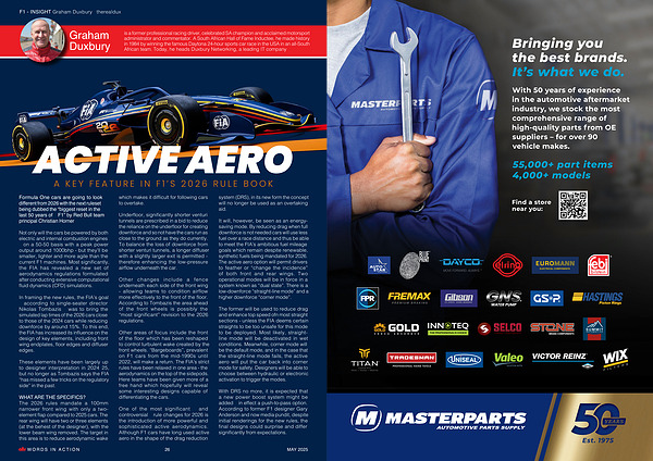 It will, however, be seen as an energysaving mode. By reducing drag when full downforce is not needed cars will use less fuel over a race distance and thus be able to meet the FIA’ s ambitious fuel mileage goals which remain despite renewable, synthetic fuels being mandated for 2026. The active aero option will permit drivers to feather or“ change the incidence” of both front and rear wings. Two operational modes will be in force in a system known as“ dual state”. There is a low-downforce“ straight-line mode” and a higher downforce“ corner mode”.