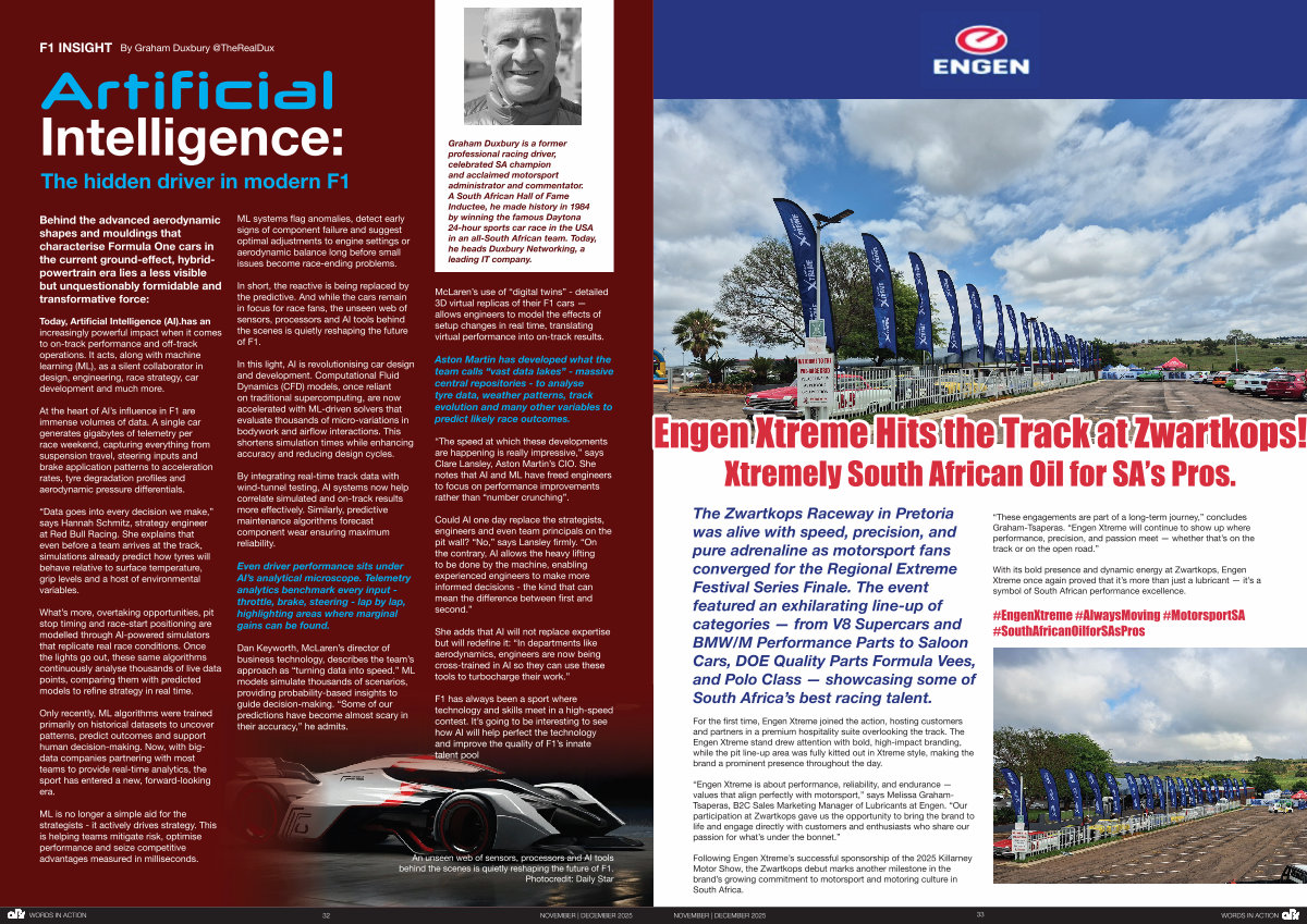 Could AI one day replace the strategists, engineers and even team principals on the pit wall?“ No,” says Lansley firmly.“ On the contrary, AI allows the heavy lifting to be done by the machine, enabling experienced engineers to make more informed decisions- the kind that can mean the difference between first and second.”