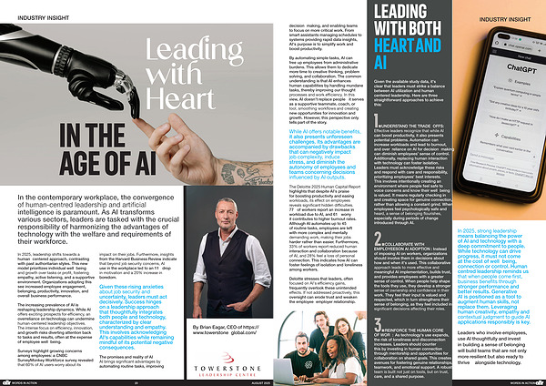 In 2025, strong leadership means balancing the power of AI and technology with a deep commitment to people. While technology can drive progress, it must not come at the cost of well-being, connection or control. Humancentred leadership reminds us that when people come first, business benefits through stronger performance and better results. Generative AI is positioned as a tool to augment human skills, not replace them. Leveraging human creativity, empathy and contextual judgment to guide AI applications responsibly is key.