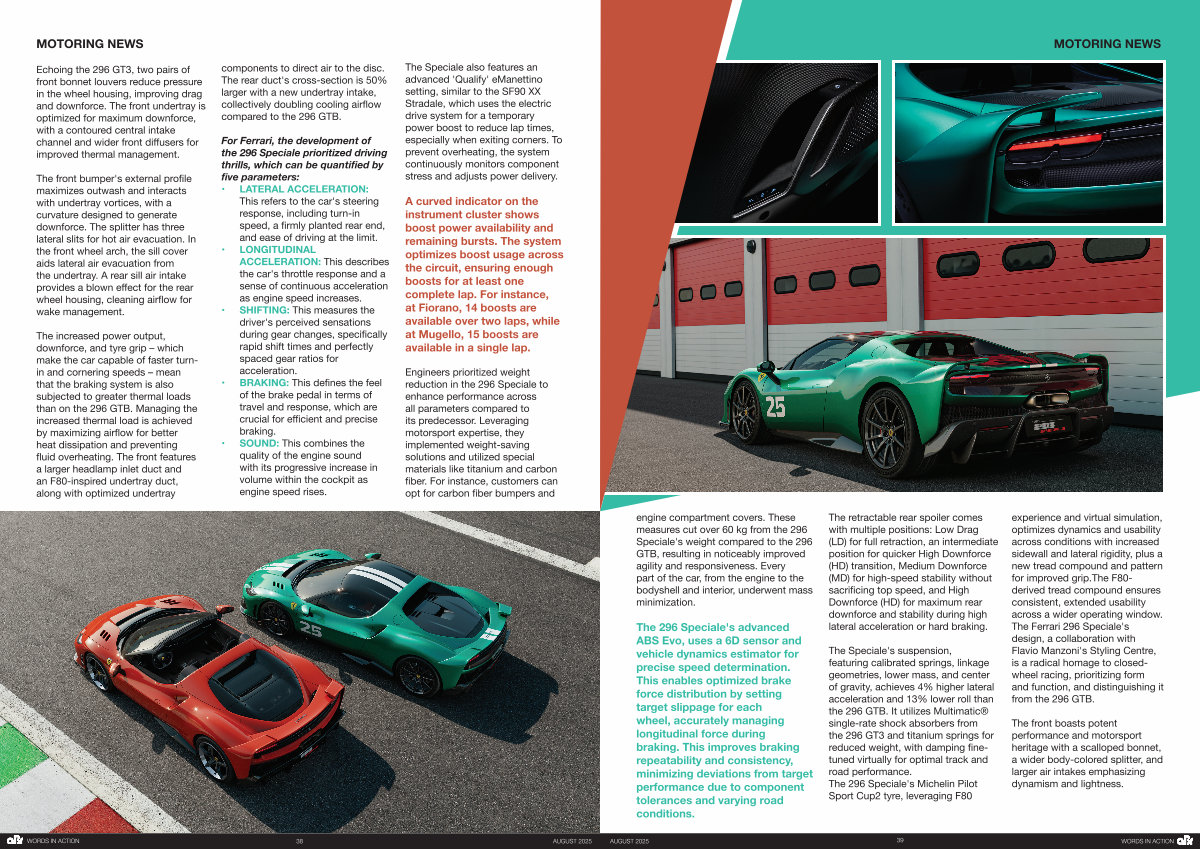 For Ferrari, the development of the 296 Speciale prioritized driving thrills, which can be quantified by five parameters: