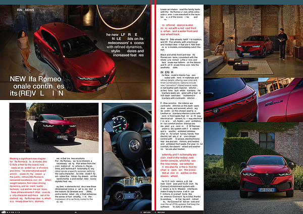 The New Tonale’ s interior has been upgraded with premium materials and refined details, offering new color and finish combinations. Options include new“ cannelloni”( ribbed weave) seats in red leather with matching stitching, or two-tone black / white Alcantara. The Alcantara seats are paired with a featurerich dashboard also upholstered in Alcantara with contrasting stitching.