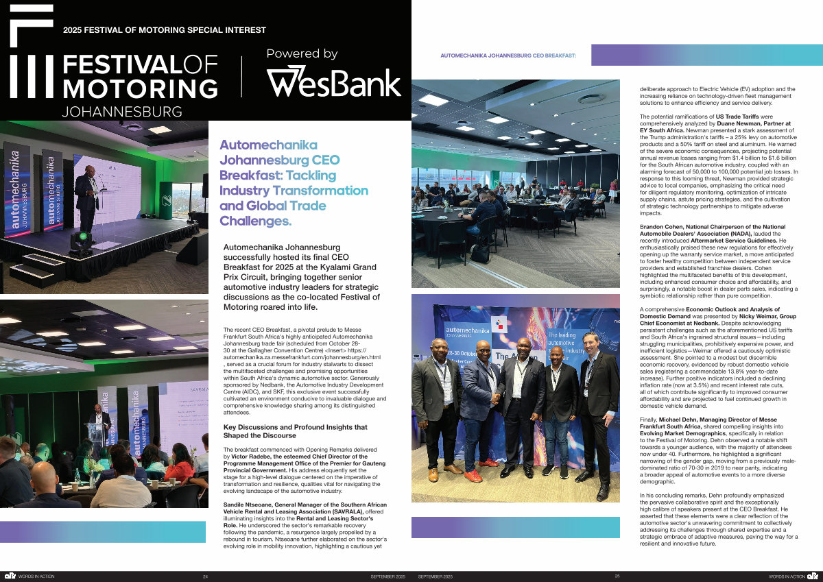 AUTOMECHANIKA JOHANNESBURG CEO BREAKFAST: deliberate approach to Electric Vehicle( EV) adoption and the increasing reliance on technology-driven fleet management solutions to enhance efficiency and service delivery.