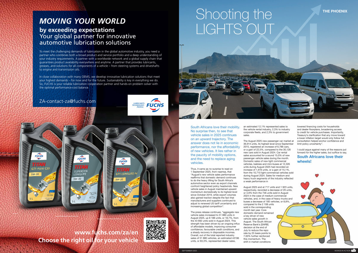 Thus, it came as no surprise to read on 1 September 2025, from naamsa, that“ August’ s new vehicle sales performance reaffirms that domestic demand continues to do the heavy lifting for South Africa’ s automotive sector even as export channels confront heightened policy headwinds. New vehicle sales in August maintained upward momentum domestically to its highest level since October 2019, while export volumes also gained traction despite the fact that manufacturers and suppliers continued to adjust to renewed US tariff uncertainty and increasing global competition”.