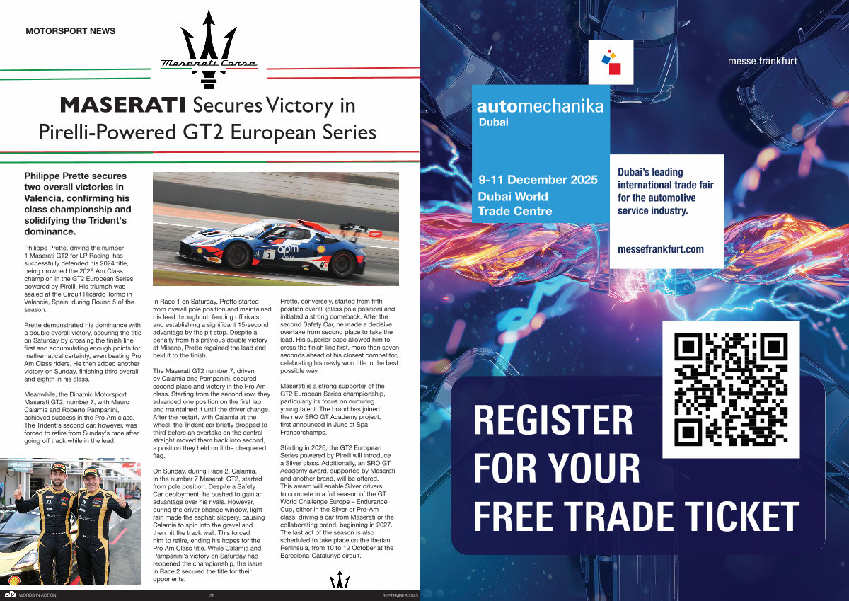 Philippe Prette, driving the number 1 Maserati GT2 for LP Racing, has successfully defended his 2024 title, being crowned the 2025 Am Class champion in the GT2 European Series powered by Pirelli. His triumph was sealed at the Circuit Ricardo Tormo in Valencia, Spain, during Round 5 of the season.