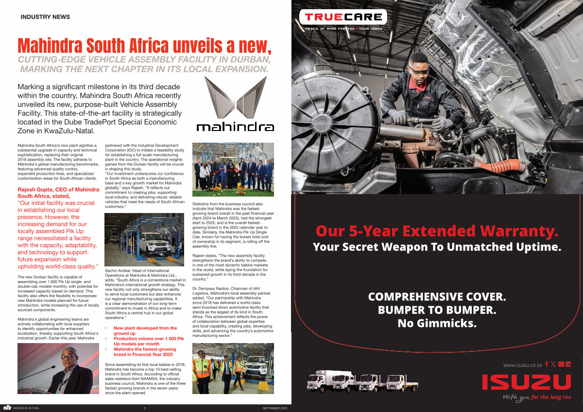 Rajesh states, " The new assembly facility strengthens the brand’ s ability to compete in one of the most dynamic bakkie markets in the world, while laying the foundation for sustained growth in its third decade in the country."
