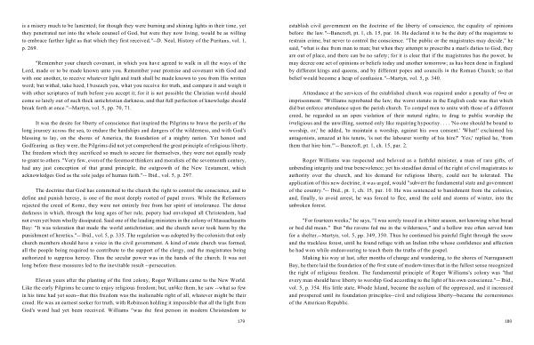 It was the desire for liberty of conscience that inspired the Pilgrims to brave the perils of the long journey across the sea , to endure the hardships and dangers of the wilderness , and with God ' s blessing to lay , on the shores of America , the foundation of a mighty nation . Yet honest and Godfearing as they were , the Pilgrims did not yet comprehend the great principle of religious liberty . The freedom which they sacrificed so much to secure for themselves , they were not equally ready to grant to others . " Very few , even of the foremost thinkers and moralists of the seventeenth century , had any just conception of that grand principle , the outgrowth of the New Testament , which acknowledges God as the sole judge of human faith ." -- Ibid ., vol . 5 , p . 297 .