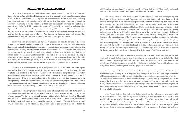 Interwoven with prophecies which they had regarded as applying to the time of the second advent was instruction specially adapted to their state of uncertainty and suspense , and encouraging them to wait patiently in the faith that what was now dark to their understanding would in due time be made plain . Among these prophecies was that of Habakkuk 2:1-4 : " I will stand upon my watch , and set me upon the tower , and will watch to see what He will say unto me , and what I shall answer when I am reproved . And the Lord answered me , and said , Write the vision , and make it plain upon tables , that he may run that readeth it . For the vision is yet for an appointed time , but at the end it shall speak , and not lie : though it tarry , wait for it ; because it will surely come , it will not tarry . Behold , his soul which is lifted up is not upright in him : but the just shall live by his faith ."